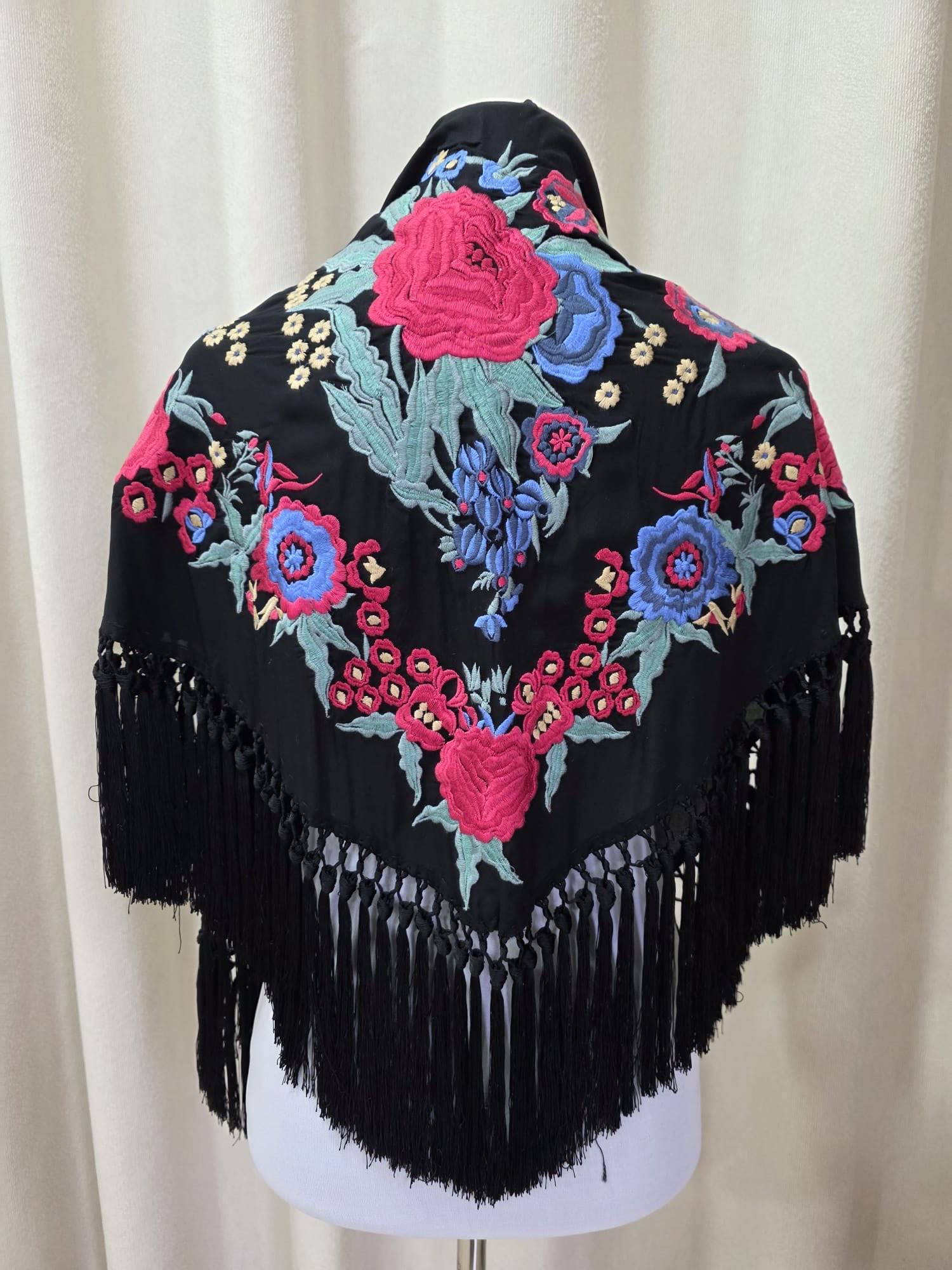 Mantoncillo artesanal de algodón bordado y flecado a mano.
