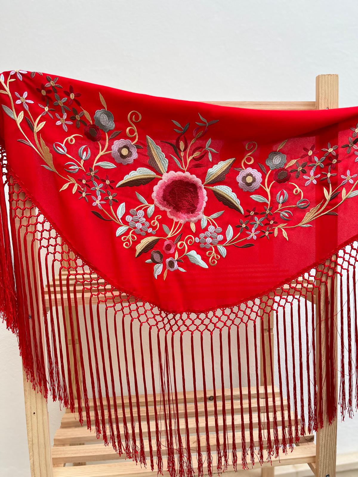 Mantoncillo Jara empolvado bordado en buganvilla