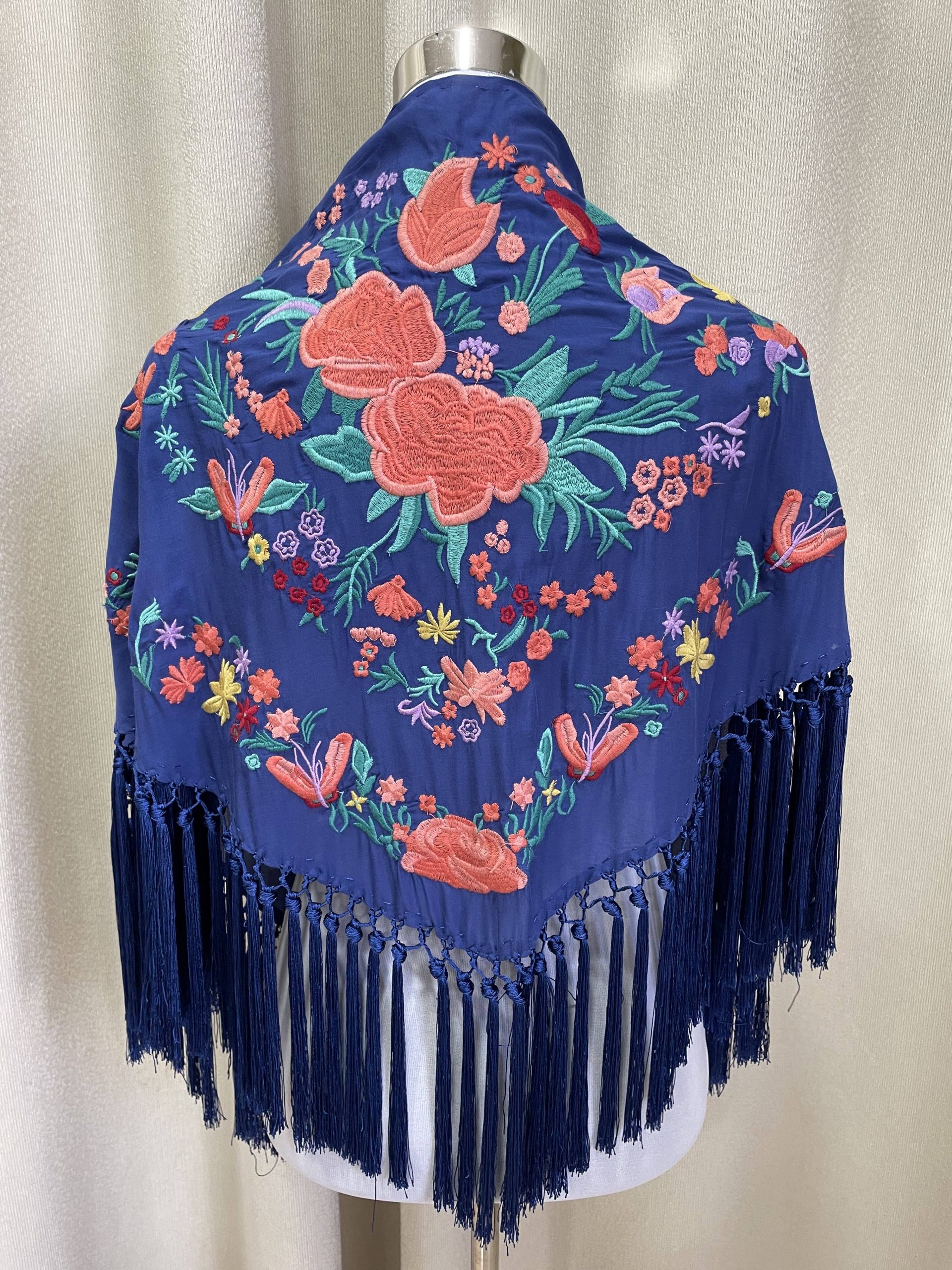 Mantoncillo artesanal de algodón bordado y flecado a mano.