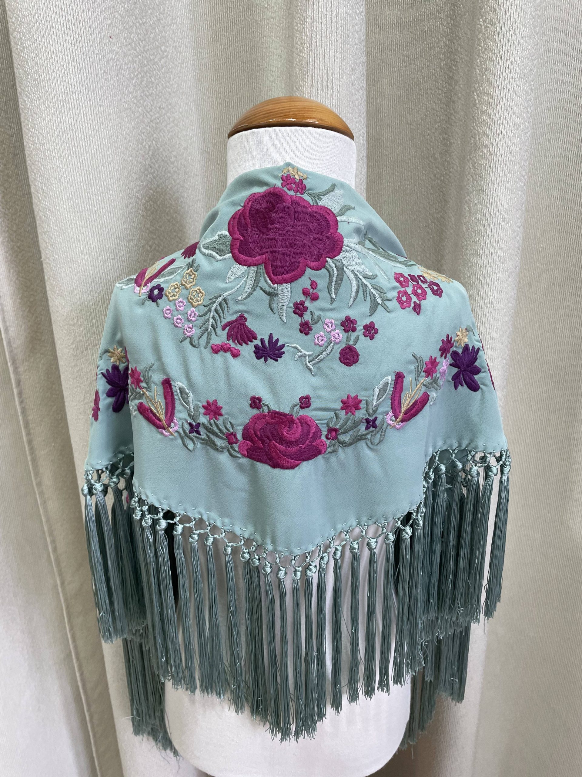 Mantoncillo artesanal de algodon bordado y flecado a mano.