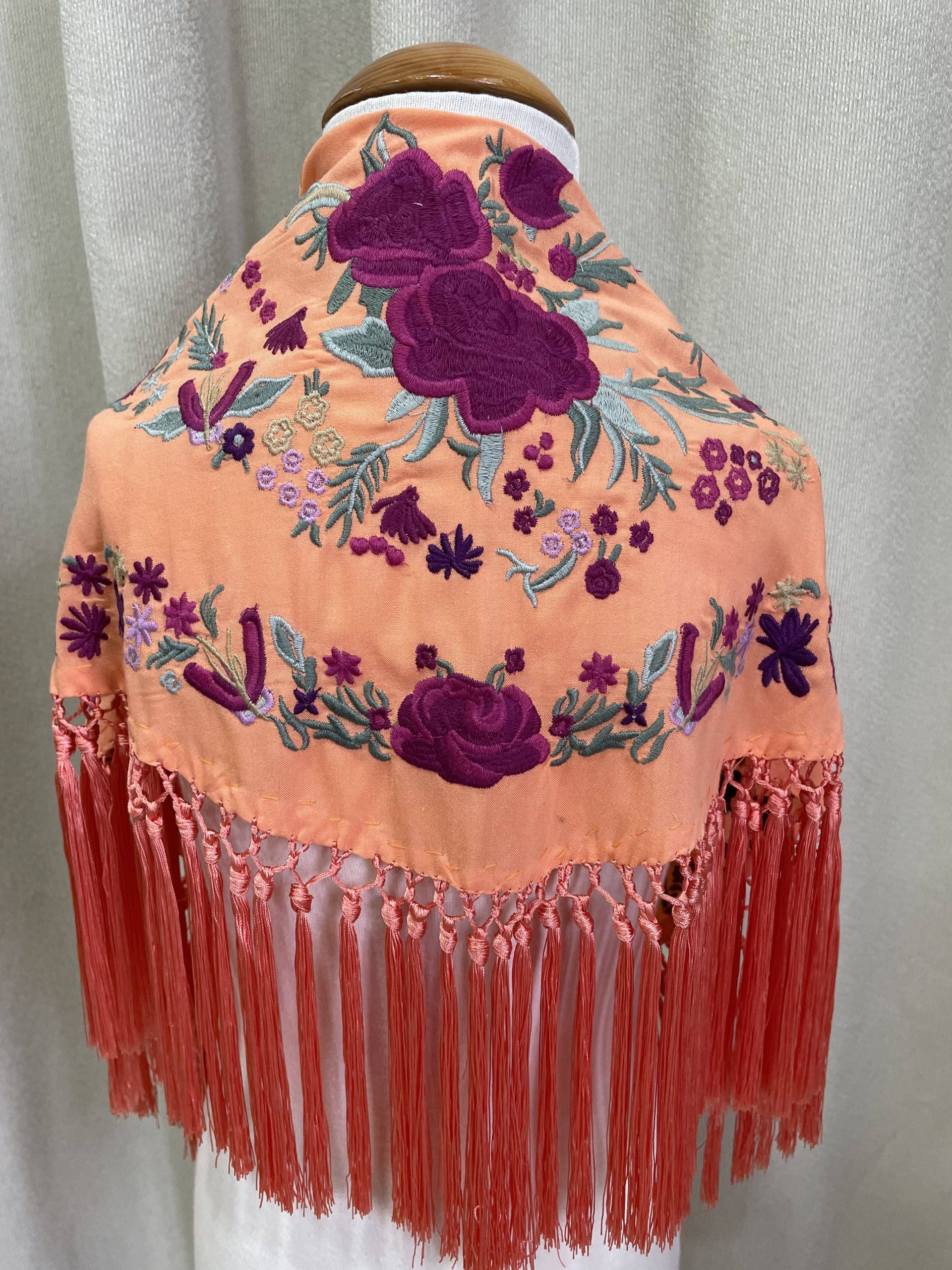 Mantoncillo artesanal de algodon bordado y flecado a mano.