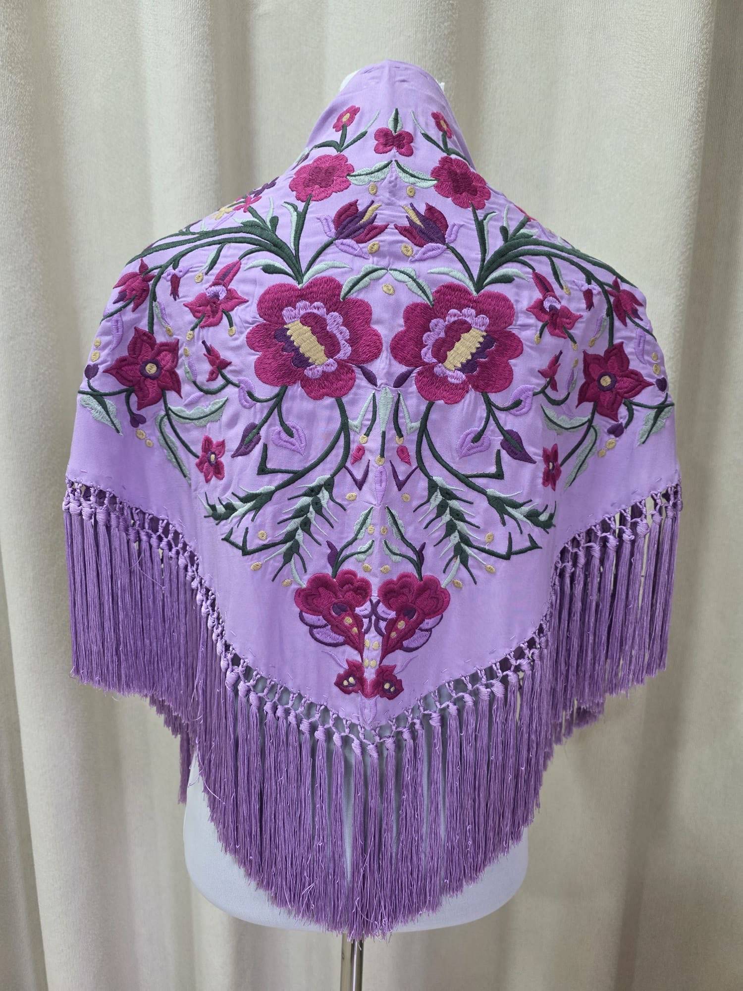 Mantoncillo artesanal de algodón bordado y flecado a mano.