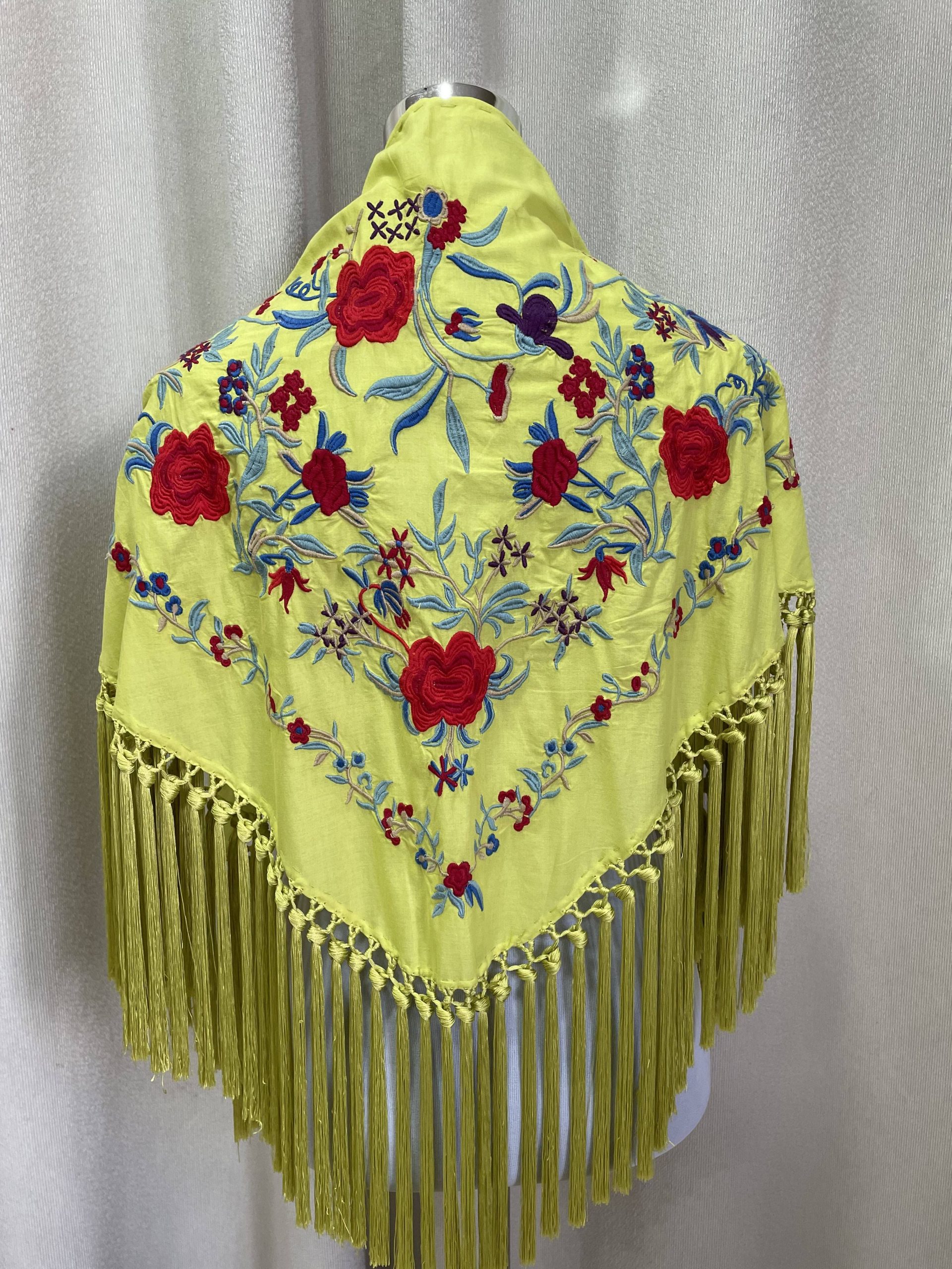 Mantoncillo artesanal de algodón bordado y flecado a mano.