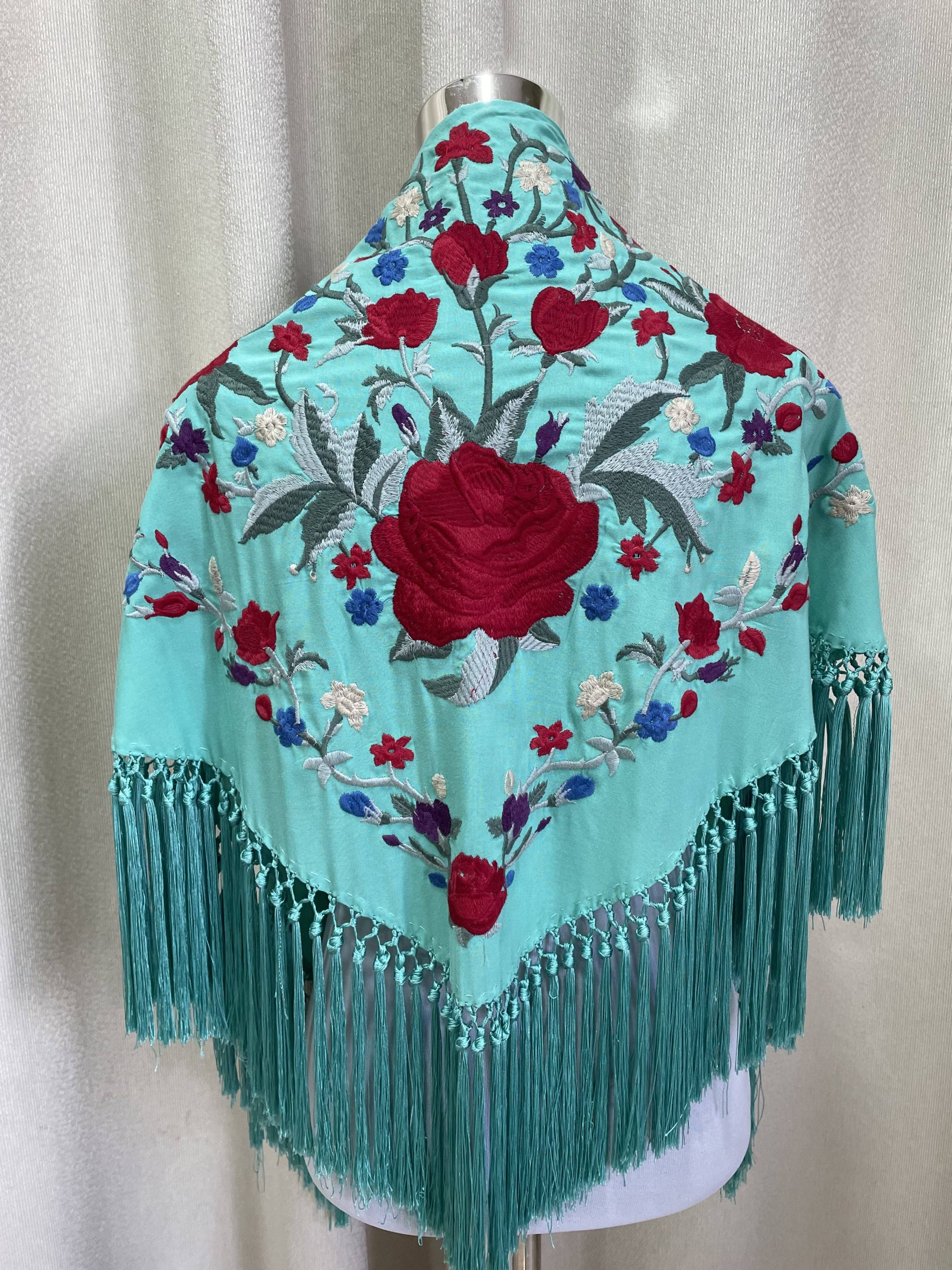 Mantoncillo artesanal de algodón bordado y flecado a mano.