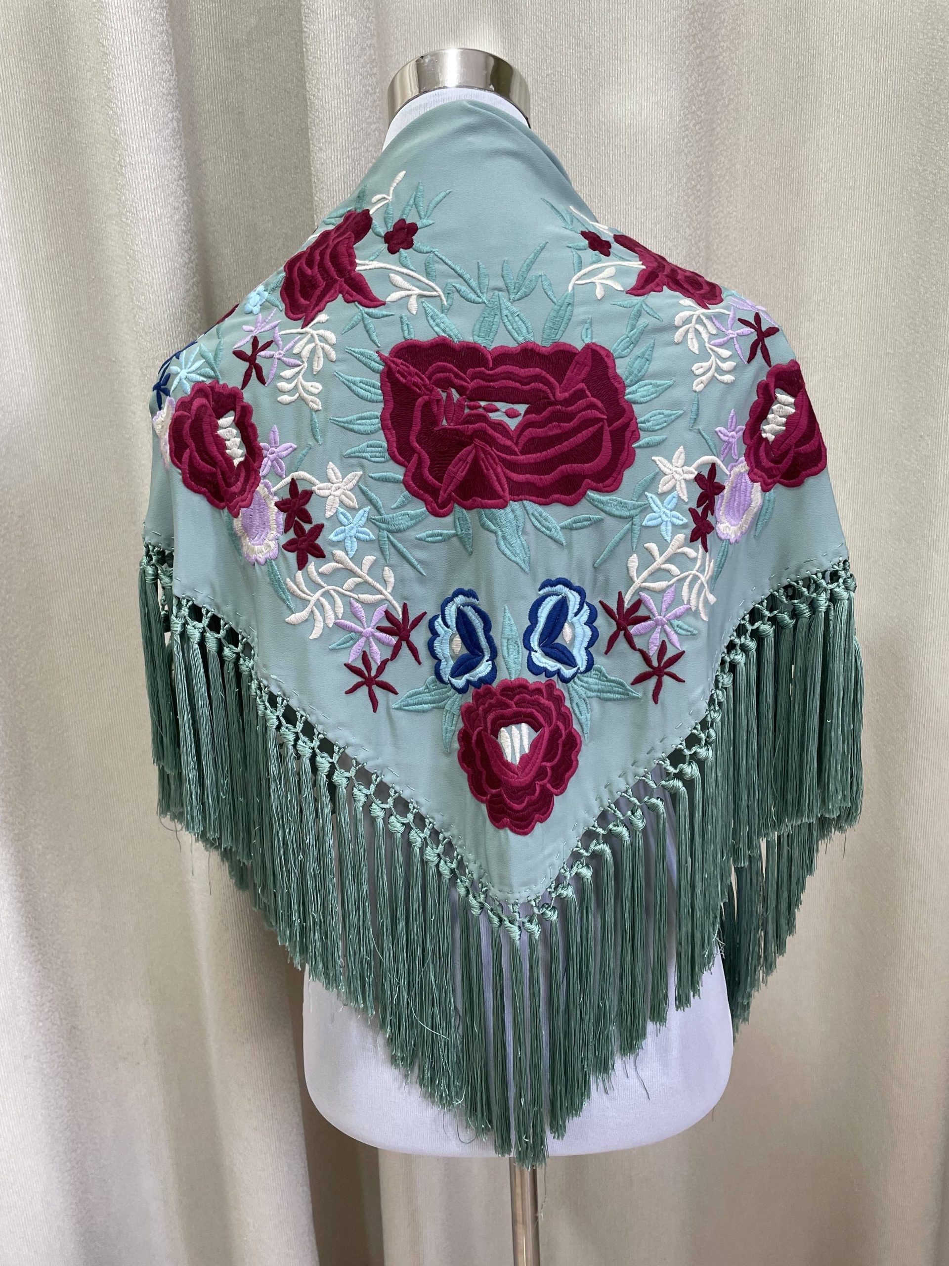 Mantoncillo artesanal de algodón bordado y flecado a mano.