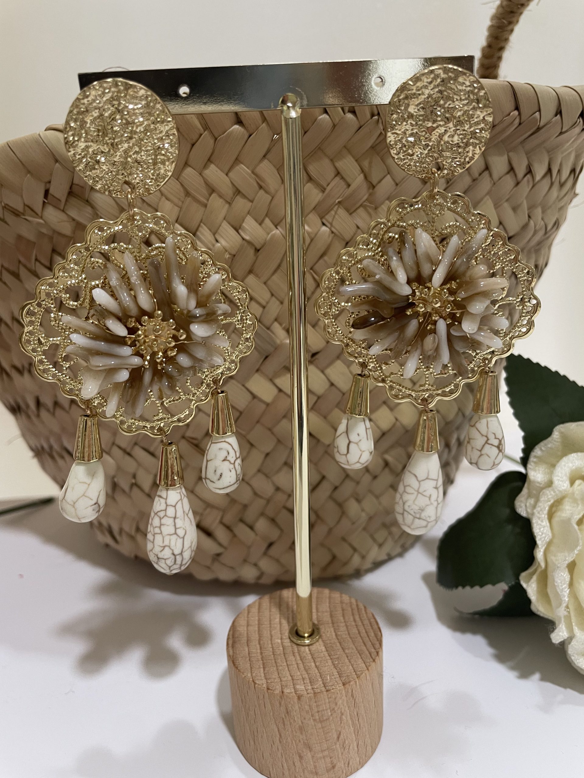 Pendiente Blanca beige.