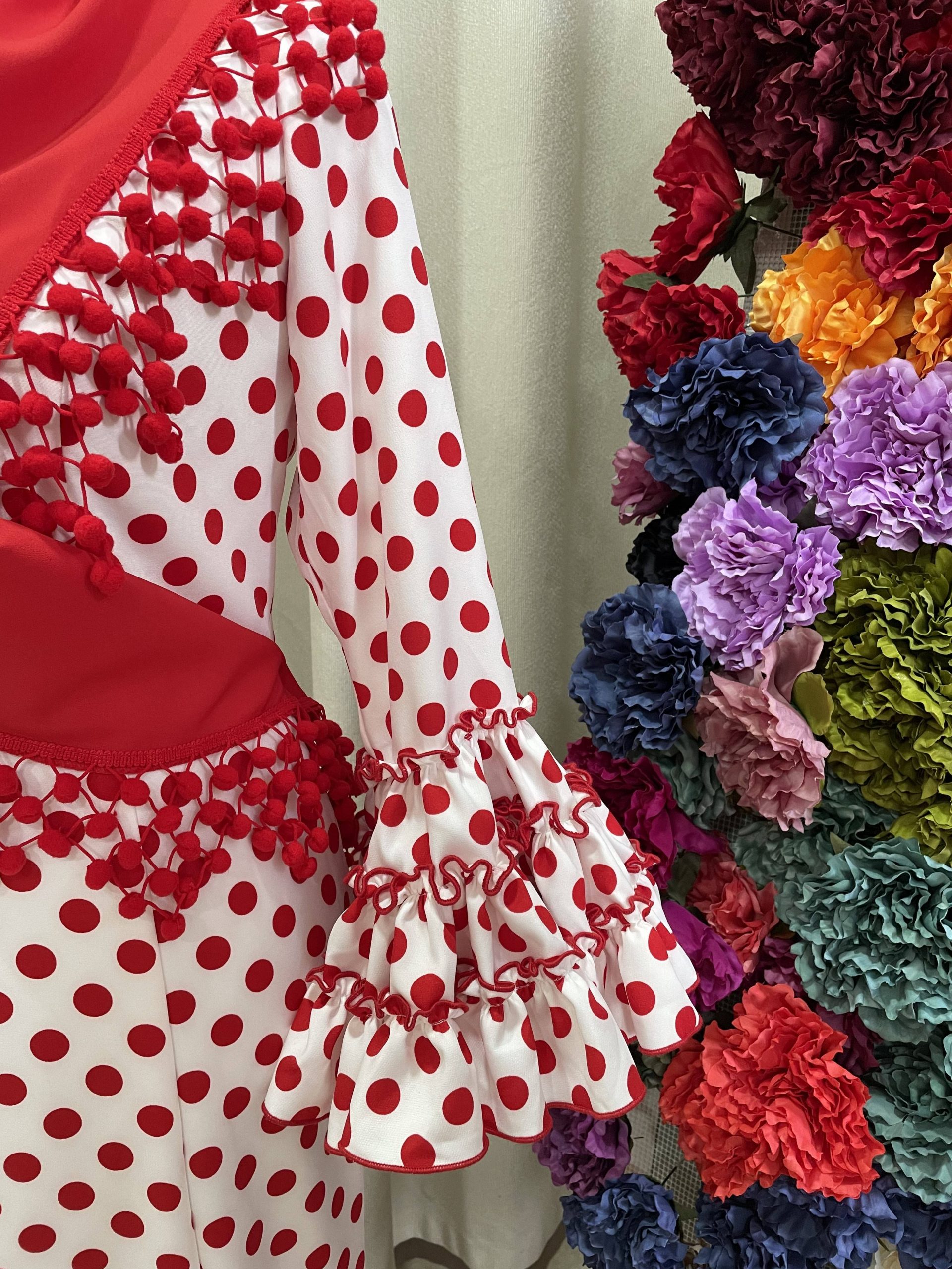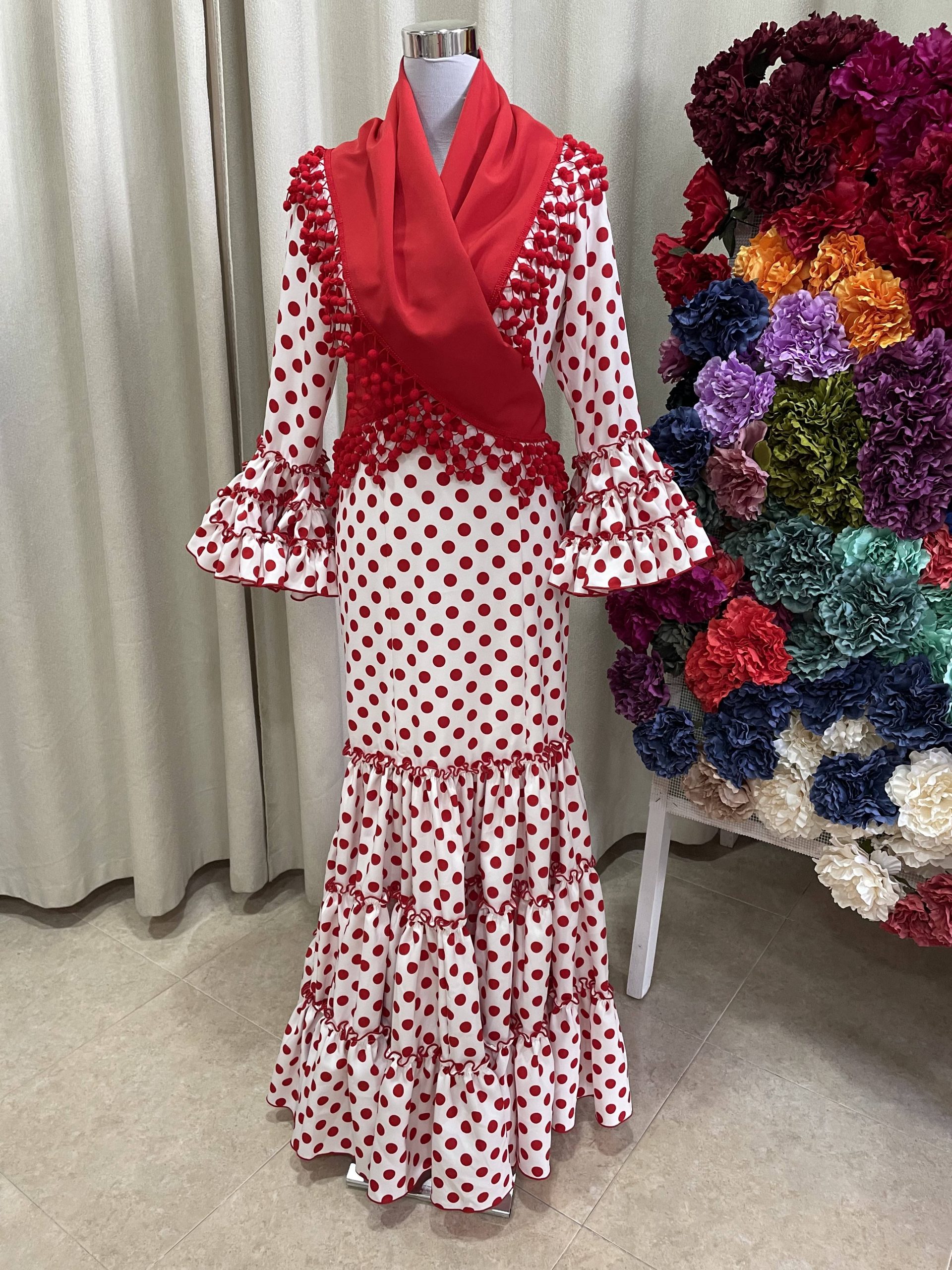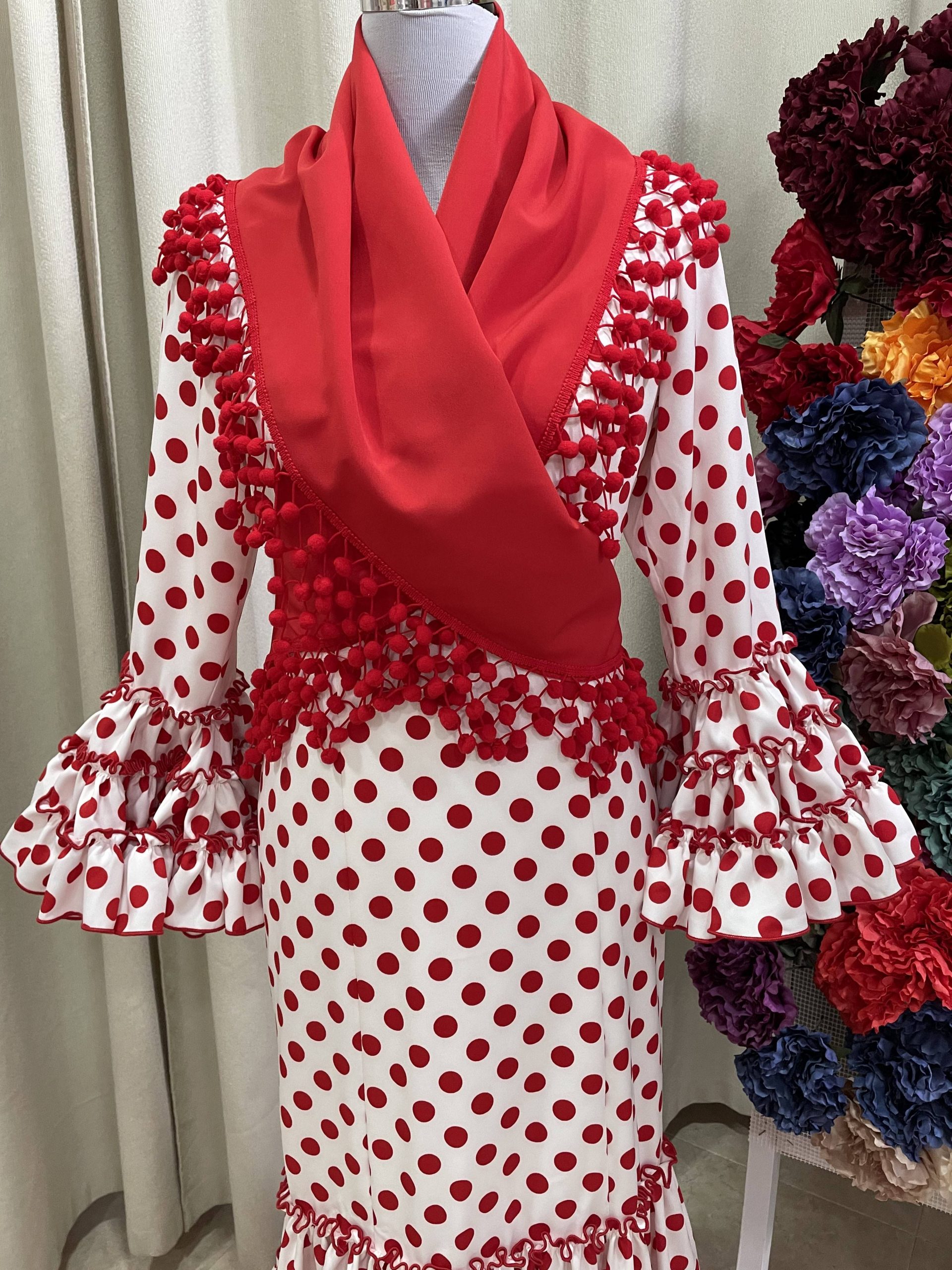 Sevilla blanco lunar medio rojo bielástica.